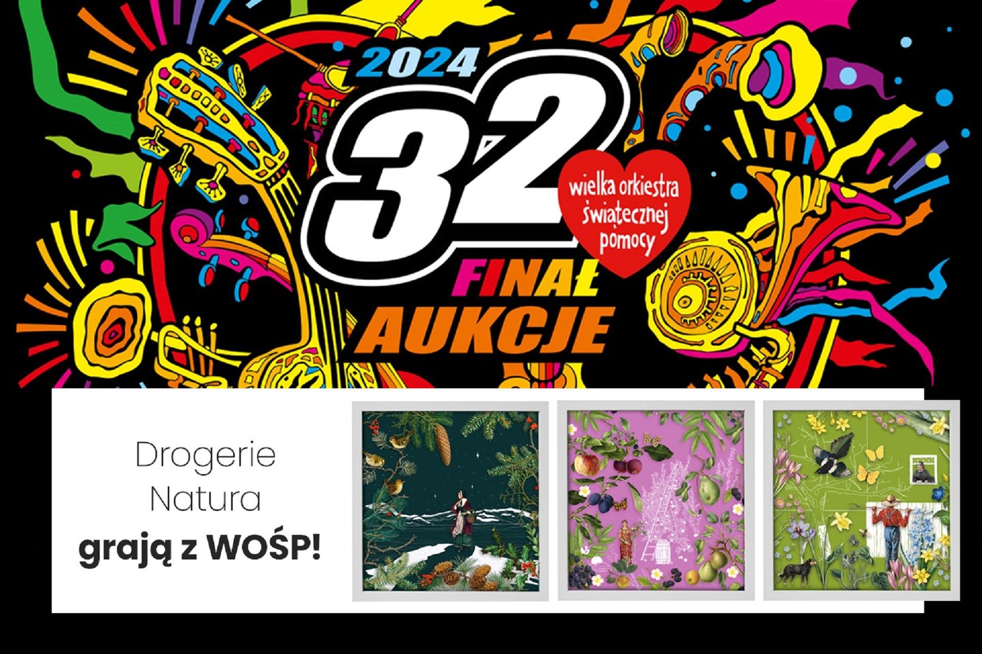 Pomaganie mamy w Naturze! W myśl tego hasła spółka i drogerie Natura włączają się w tegoroczny, 32. Finał Wielkiej Orkiestry Świątecznej Pomocy. Możesz licytować wyjątkowe grafiki autorstwa Barbary Olejarczyk, które zdobiły 12 wydań magazynu Natura w 2023 roku. Już dziś przyłącz się do naszej aukcji dla WOŚP na Allegro.