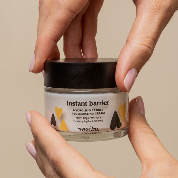 Krem Instant Barrier to intensywna kuracja regenerująca, która odbudowuje naturalną barierę ochronną skóry. Unikalna formuła, wzbogacona o ceramidy, lipidy i prebiotyki, działa jak opatrunek, przyspieszając proces gojenia i łagodząc podrażnienia. Witaminy, pantenol, alantoina oraz kompleks Hydroviton® PLUS zapewniają głębokie nawilżenie i odżywienie, przywracając skórze komfort i zdrowy wygląd. Lekka konsystencja sprawia, że krem szybko się wchłania, nie obciążając nawet najbardziej wrażliwej cery.