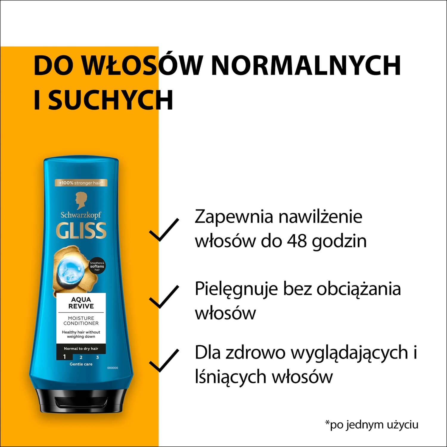 • Nawilżenie: do 48 h uczucia nawilżonych włosów.