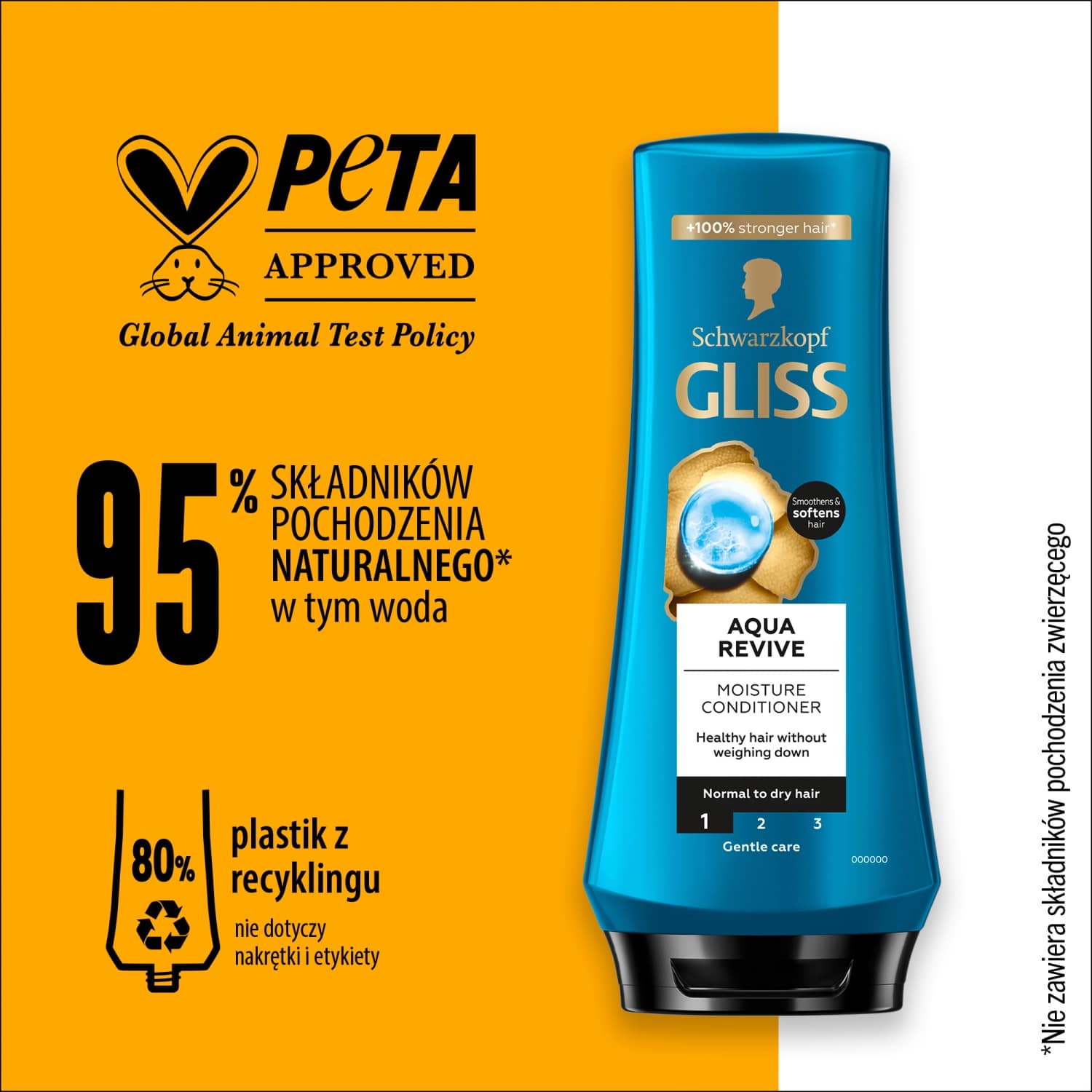 Odżywka do włosów Schwarzkopf Gliss Aqua Revive nawilży i widocznie poprawi jakość Twoich włosów, bez obciążenia! Linia produktów Aqua Revive została stworzona by podkreślić piękno i odpowiedzieć na wszystkie potrzeby włosów przesuszonych i normalnych. Bogata, ale lekka formuła z kompleksem kwasu hialuronowego i algami morskimi zapewnia odczucie nawilżenia i połysk.