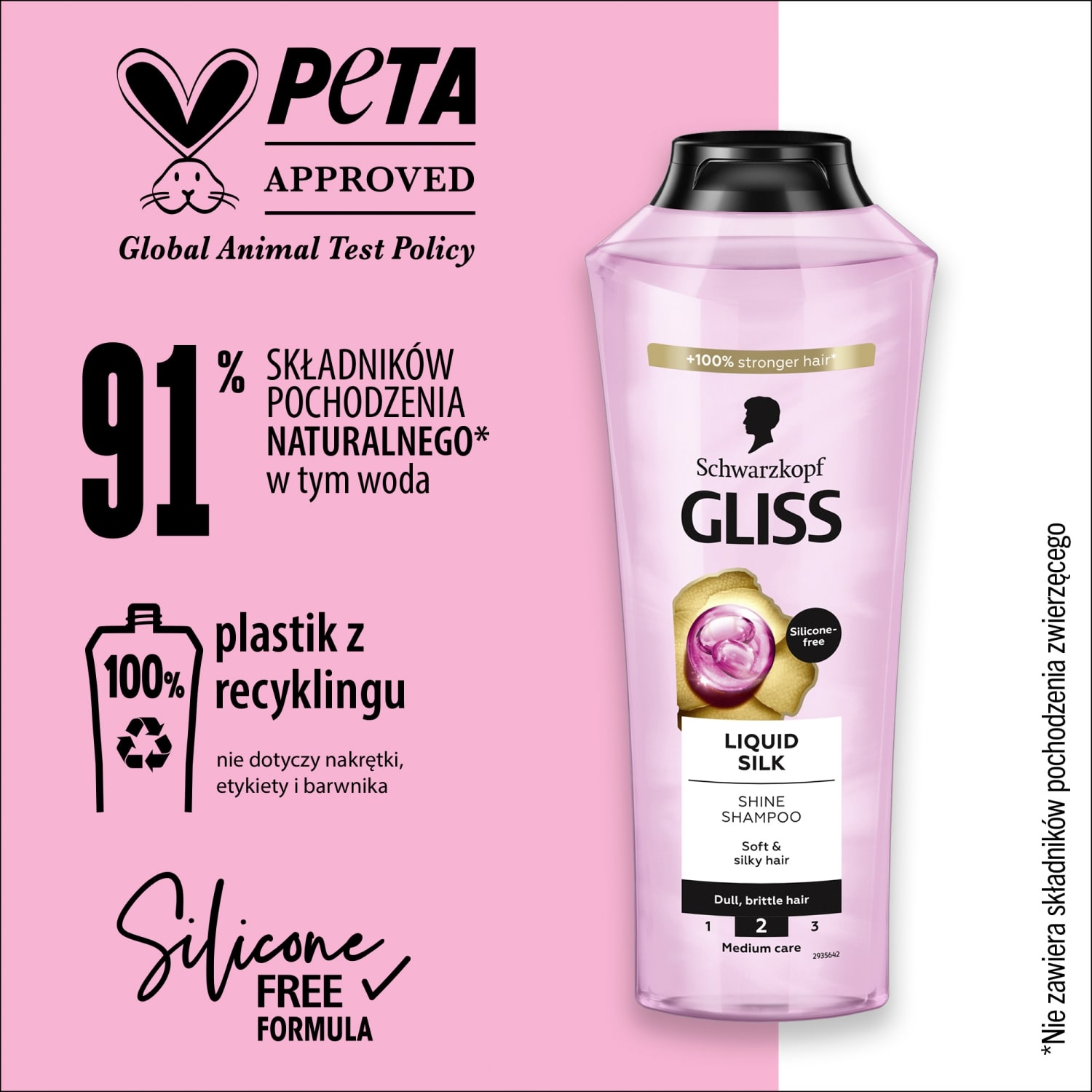 Szampon do włosów Schwarzkopf Gliss Liquid Silk zadba o Twoje włosy, które cierpią z powodu braku gładkości, przez co są łamliwe i matowe.