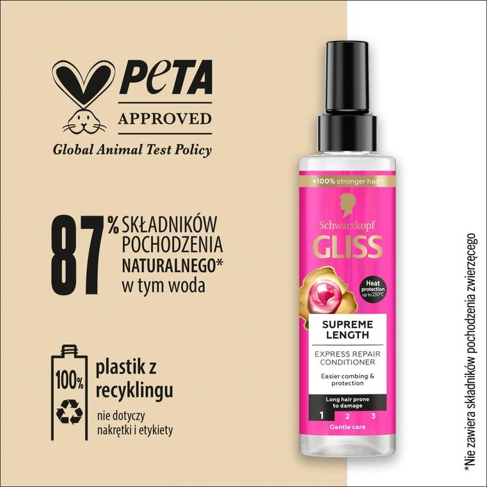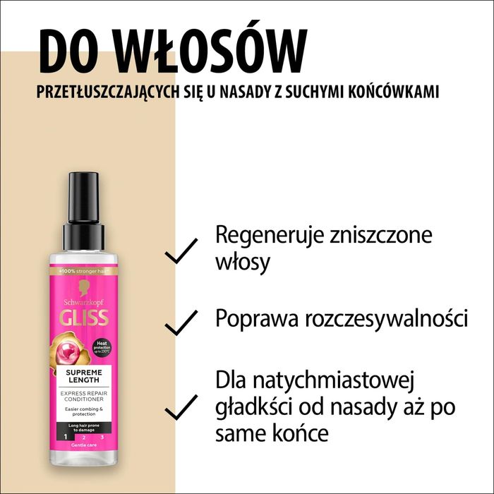 - Nie przycinaj, regeneruj: szampon do włosów Schwarzkopf Gliss Supreme Length przeznaczony jest do naprawy długich włosów i ich ochrony przed łamaniem.