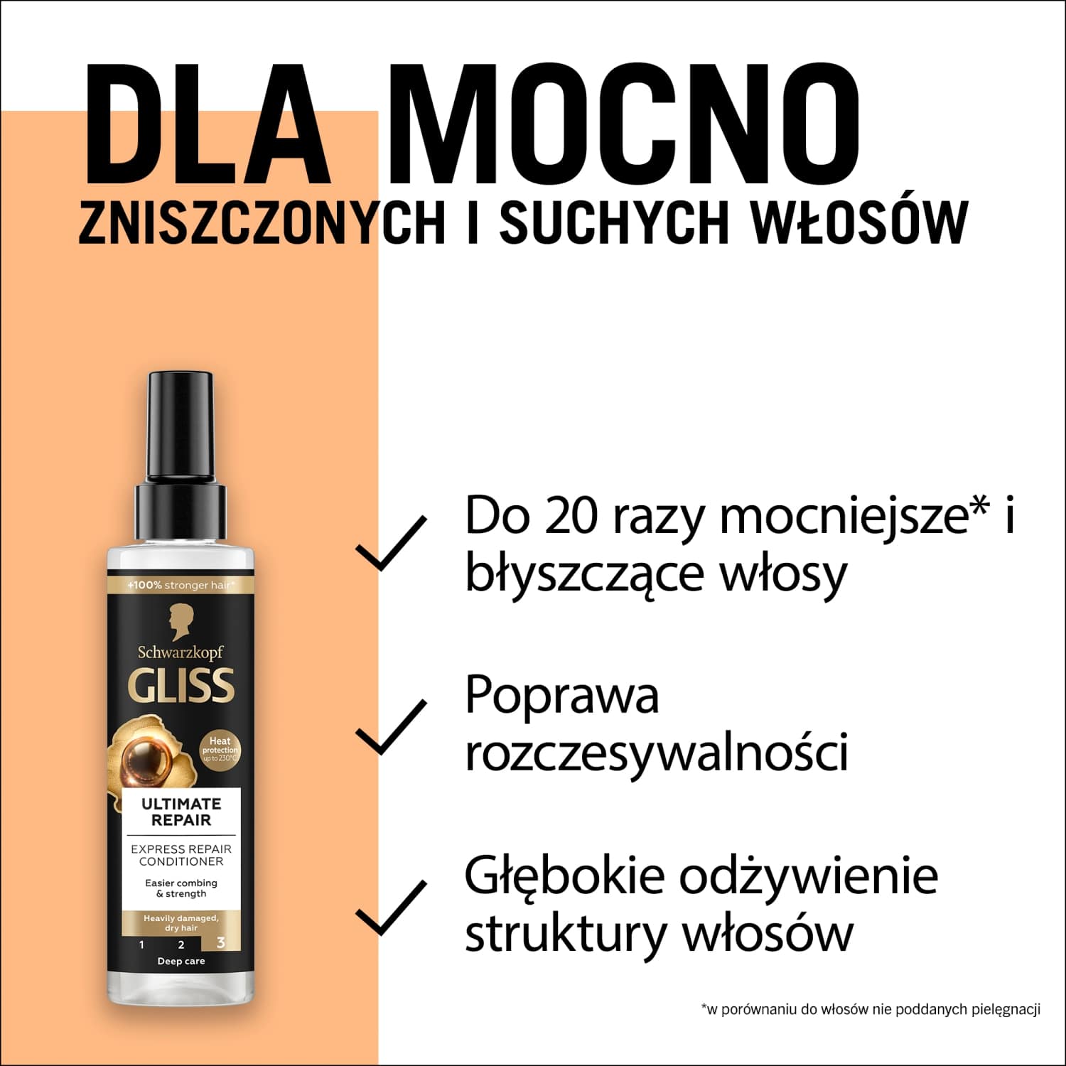 Ekspresowa odżywka do włosów bez spłukiwania Schwarzkopf Gliss Ultimate Repair zregeneruje nawet mocno zniszczone włosy!